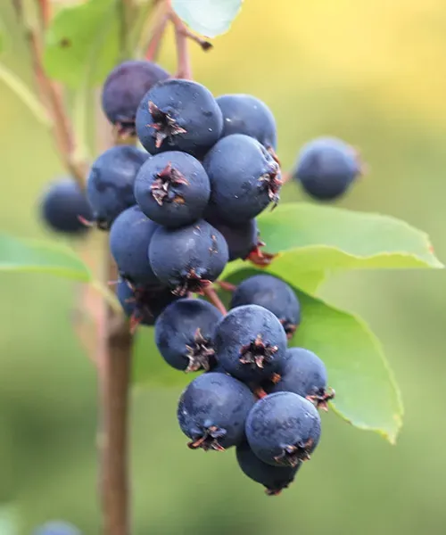 Descrierea: Arbust fructifer peren originar din America de nord renumit pentru rezistenta la seceta si temperaturi scazute. Arbust foarte putin pretentios la sol, produce fructe asemanatoare afinelor de cultura dar mult diferite la gust. Fructe asemanatoare ca marime afinelor de culura, de culoare albastru violet , dulci si aromate folosite atat pentru consum propriu cat si in procesare.