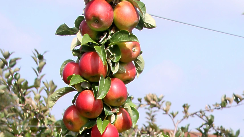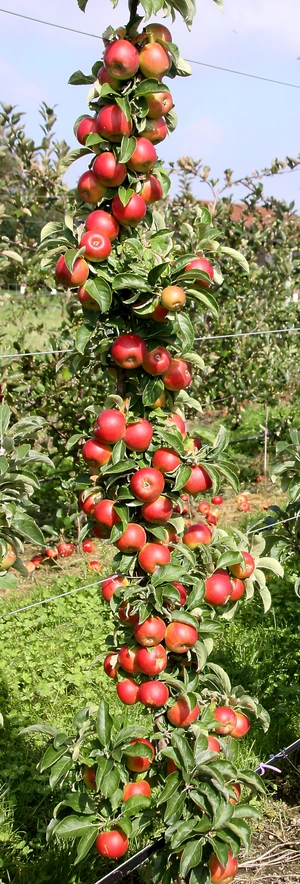 Merele cresc inghesuite și rareori formează lăstari laterali. Dacă acestea se formează, trebuie îndepărtate pentru a păstra caracterul columnar. În caz contrar, nu sunt necesare măsuri de tăiere. Copacul rămâne îngust (aprox. 40 cm) și, prin urmare, ocupă foarte puțin spațiu. În primii ani trebuie ancorat  (legat) de un tutore. Copacii pot crește până la o înălțime de peste 3 m. Este important să reduceți numărul de fructe la sfârșitul lunii mai. Poate rămâne maximum un fruct per ciorchine de flori; restul sunt eliminati. Acest lucru permite fructelor rămase să se dezvolte mai bine și pomului să producă din nou multe flori în anul următor.