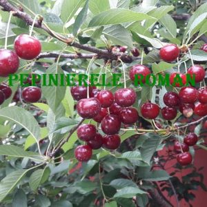 Descriere: Pom de vigoare mica, cu coroana turtita, rodeste pe ramuri plete. Fructele sunt mari, rotunde de culoare visiniu negricioas, lucioase. Pulpa este de culoare rosie visinie, usor acidulata, astringenta, semiaderenta la sambure.