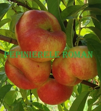 - Mărime și formă: Fructele sunt de mărime mare (aprox. 150-200 g), cu o formă caracteristică plat-turtită.