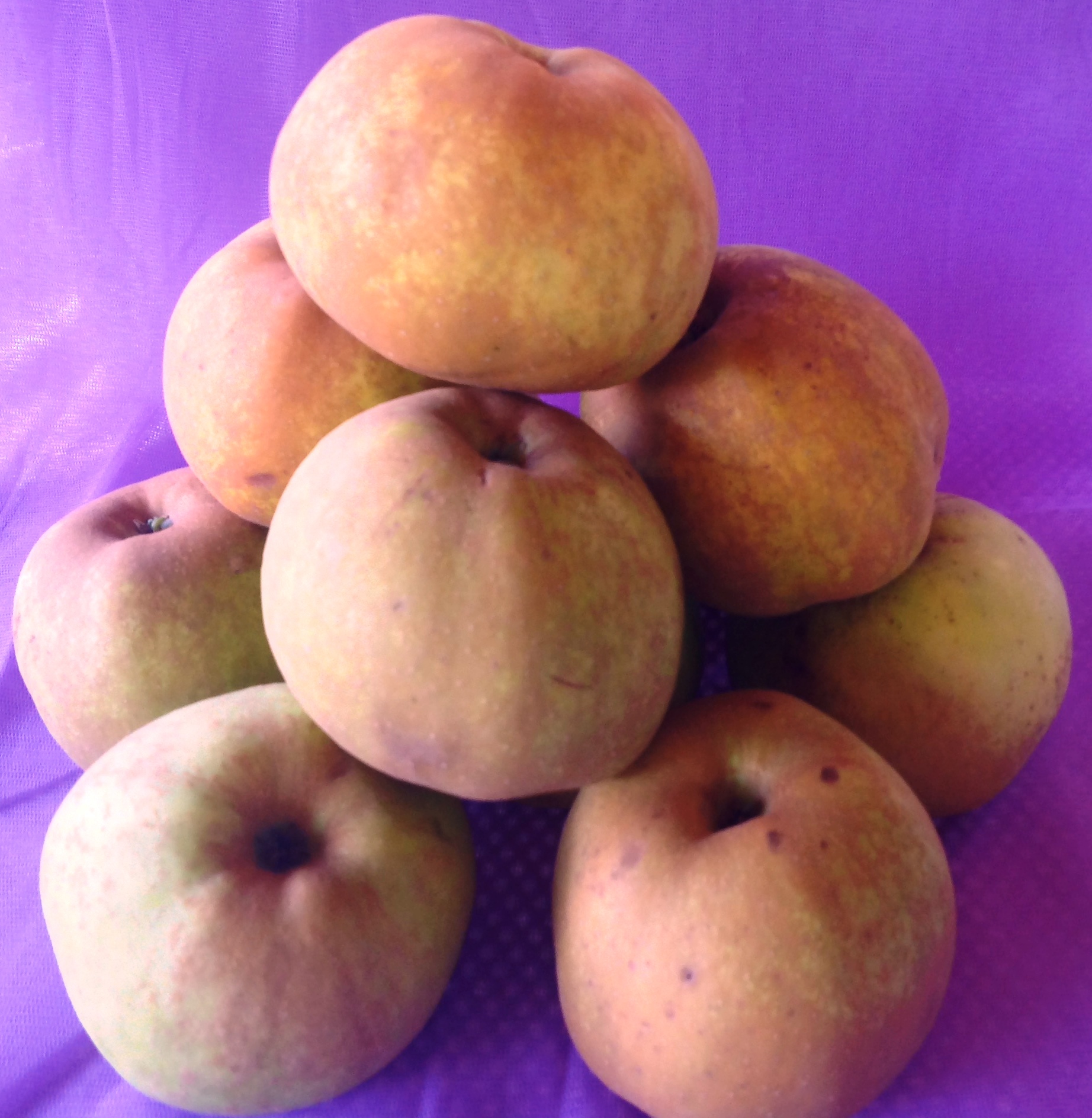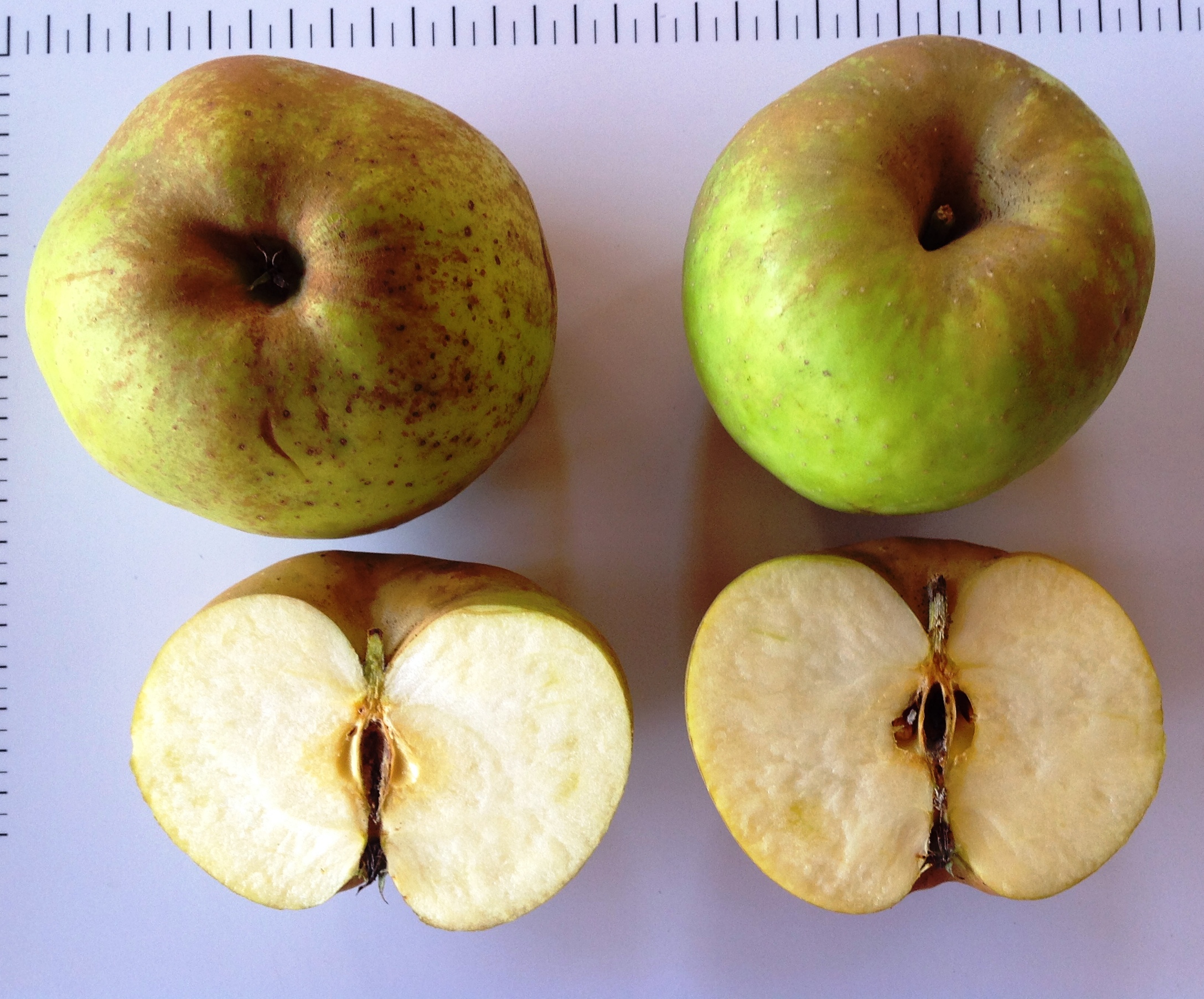 Descriere: Pom de vigoare mare, cu ramuri sinuoase si coroana rasfirata. Fructele sunt mijlocii, de 130-150 g, sferice, uneori usor conice, de culoare maro – gri cu aspect de rugina. Pulpa este alb – galbuie, crocanta, suculenta, putin acrisoara si foarte aromata.