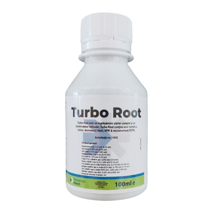TURBO ROOT este un îngrășământ starter complet și un biostimulator radicular. Turbo Root conține acizi humici și fulvici pentru a stimula dezvoltarea rădăcinilor si cresterea plantelor. Aminoacizii liberi stimuleaza creșterea rădăcinilor, reducând în același timp stresul plantelor.